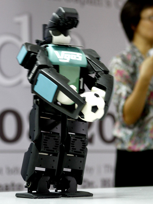 | Robot đá bóng. Ảnh: X.T |