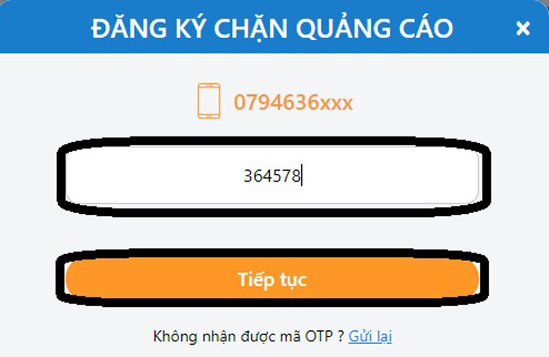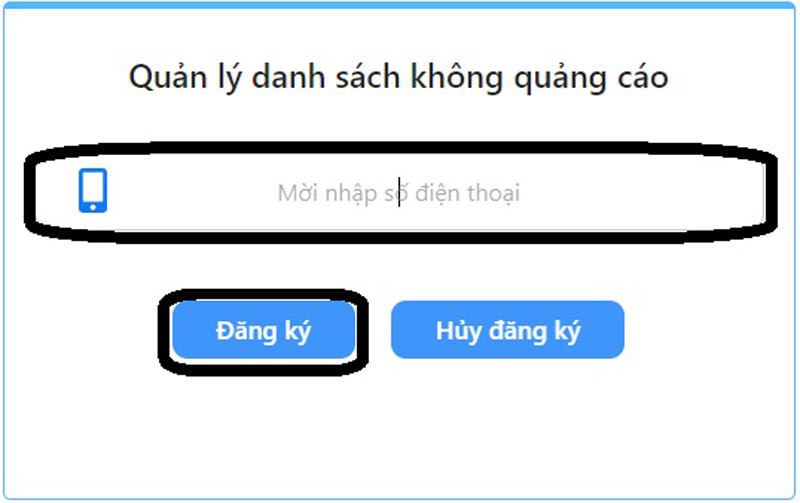 Bước 2: Tại ô Quản lý danh sách không quảng cáo, bạn nhập số điện thoại mình muốn chặn quảng cáo. Sau đó, bấm Đăng ký.