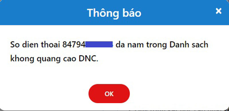 Để đăng ký vào Danh sách không quảng cáo: DK DNC gửi 5656.
