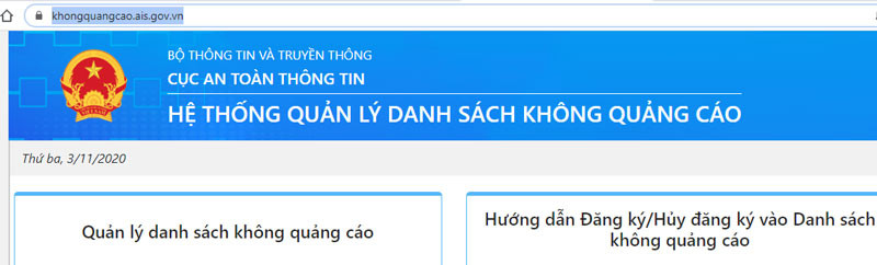 Bước 1: Truy cập vào website https://khongquangcao.ais.gov.vn/.