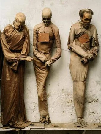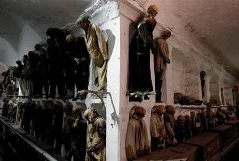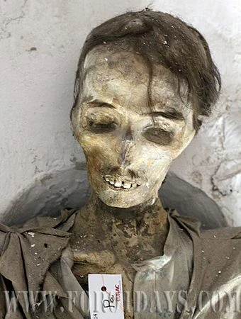 Khách tham quan đến đây được chứng kiến đủ các loại xác ướp già trẻ, trai gái, với đủ các tư thế đứng, ngồi, treo lủng lẳng…