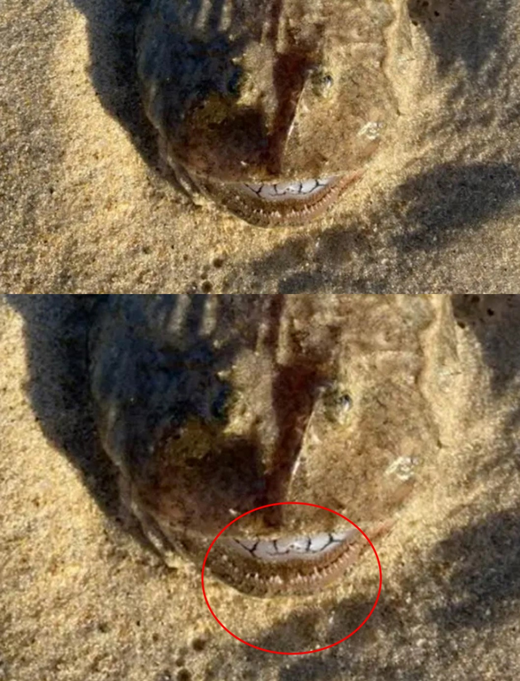 Ở vùng Queensland, phía đông bắc Australia một cô nàng đã chia sẻ hình ảnh một chú cá dị thường với hàm răng trắng nhô ra trôi dạt vào bờ nhận nhiều sự chú ý của cộng đồng mạng.
