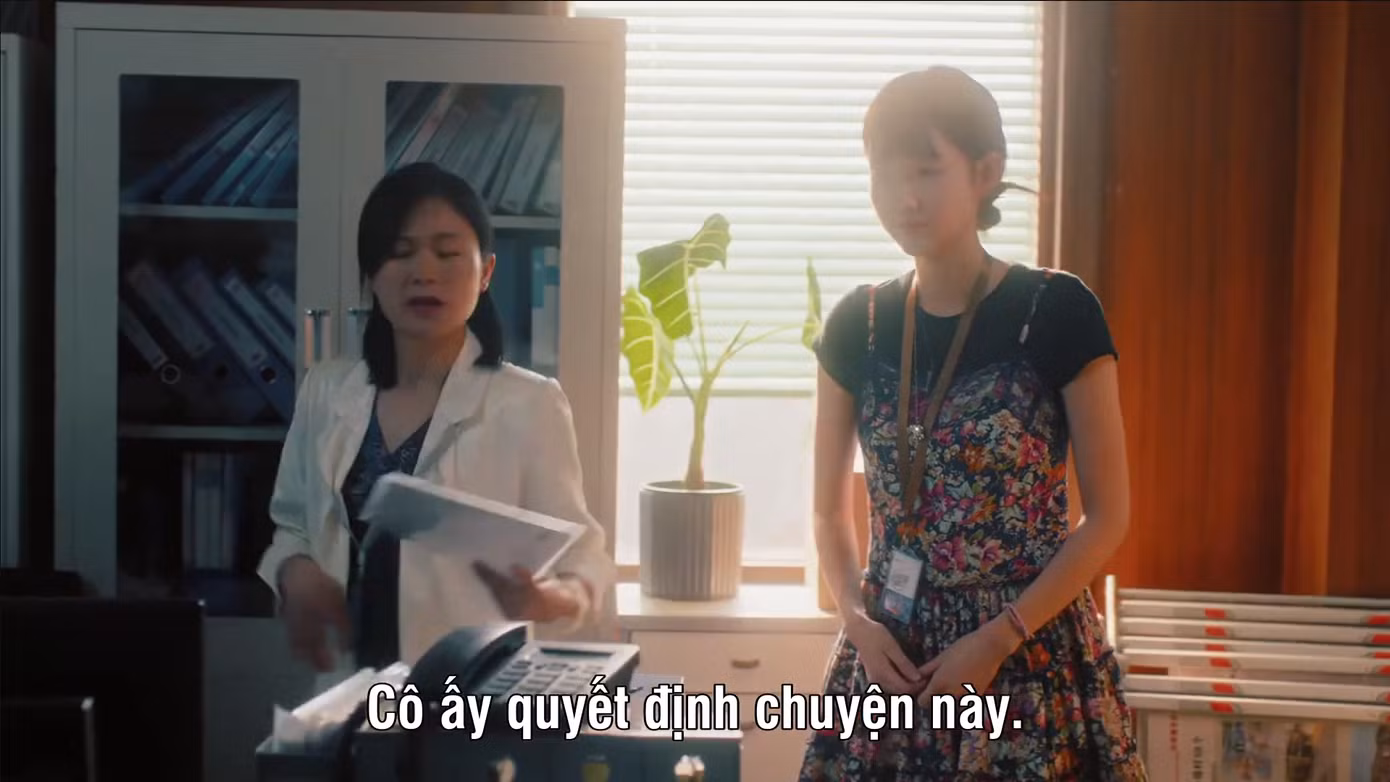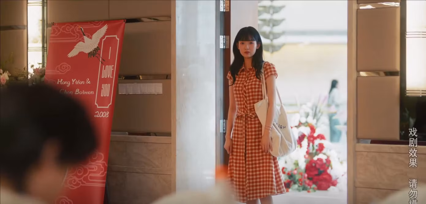 Nữ chính Đại Cát (Vương Ngọc Văn thủ vai) bừng sáng visual trong những phân cảnh đầu tiên tại trường đại học. Kiểu tóc mái dày, búi lệch kẹp tóc to bản, cùng màu sắc trang phục nổi bật, phóng khoáng tô điểm cho dáng vẻ nhiệt huyết, tươi tắn của nữ sinh đại học năm cuối.