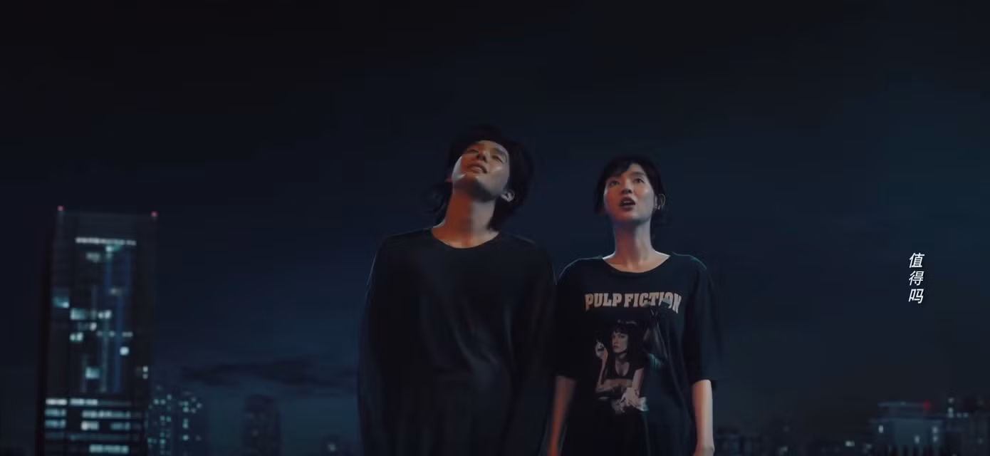 Trong đó, những thiết kế áo phông in hình tác phẩm điện ảnh huyền thoại Pulp Fiction nam nữ chính mặc chung mang ý nghĩa đặc biệt, khéo léo thể hiện thái độ ủng hộ của Đại Cát đối với đam mê, sự nghiệp phim ảnh của Chu Thủy.
