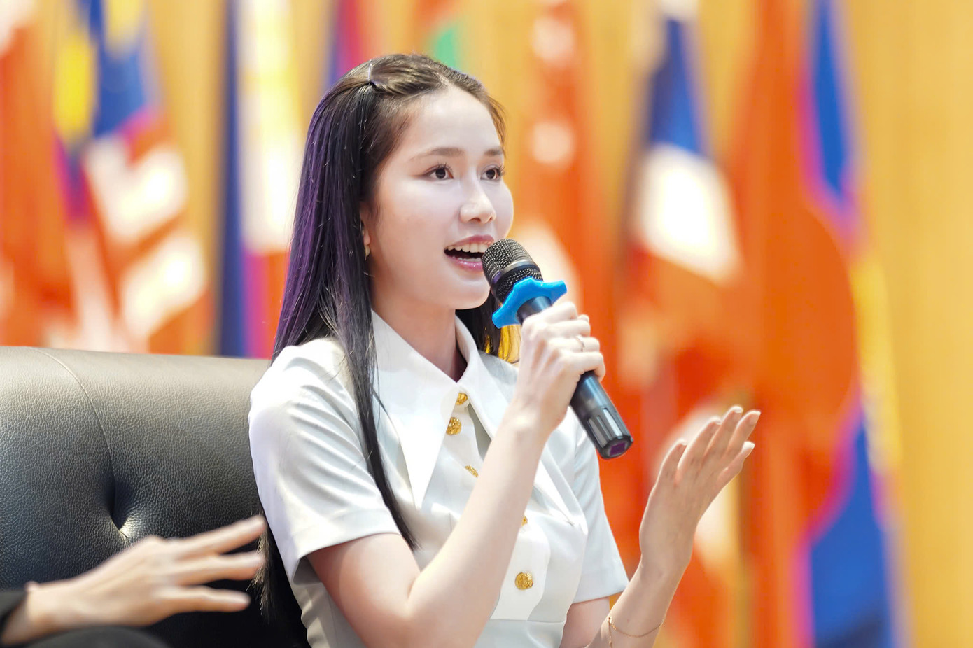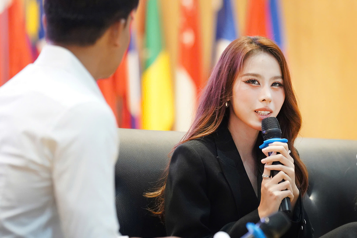 Trong buổi giao lưu, Á hậu Ngọc Hằng cho biết lúc ghi danh Hoa hậu Việt Nam cô mới 19 tuổi, vừa hoàn thành chương trình học cấp 3, chập chững bước vào đại học. Việc thi hoa hậu giúp cô trưởng thành, hoàn thiện mọi mặt.