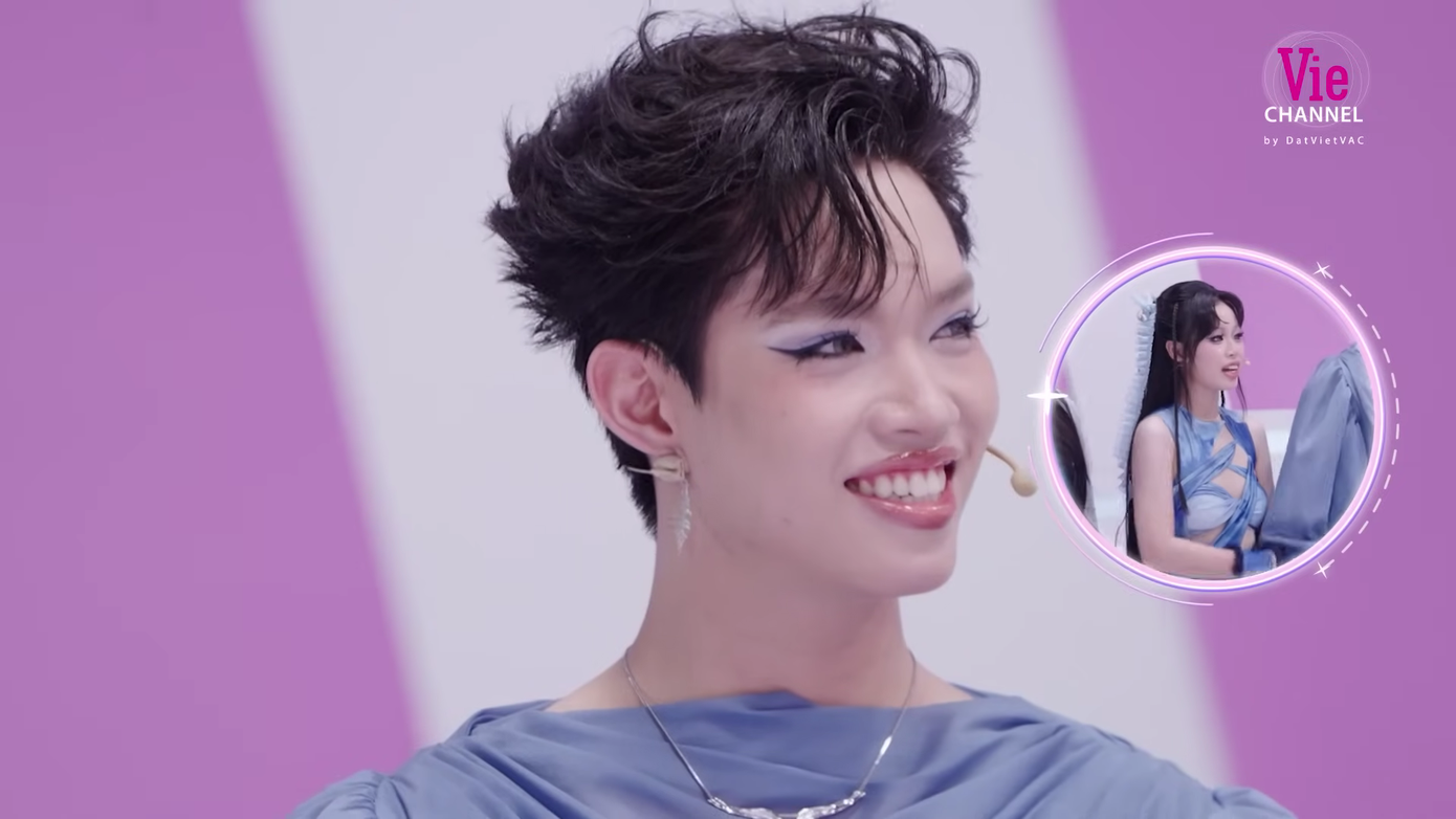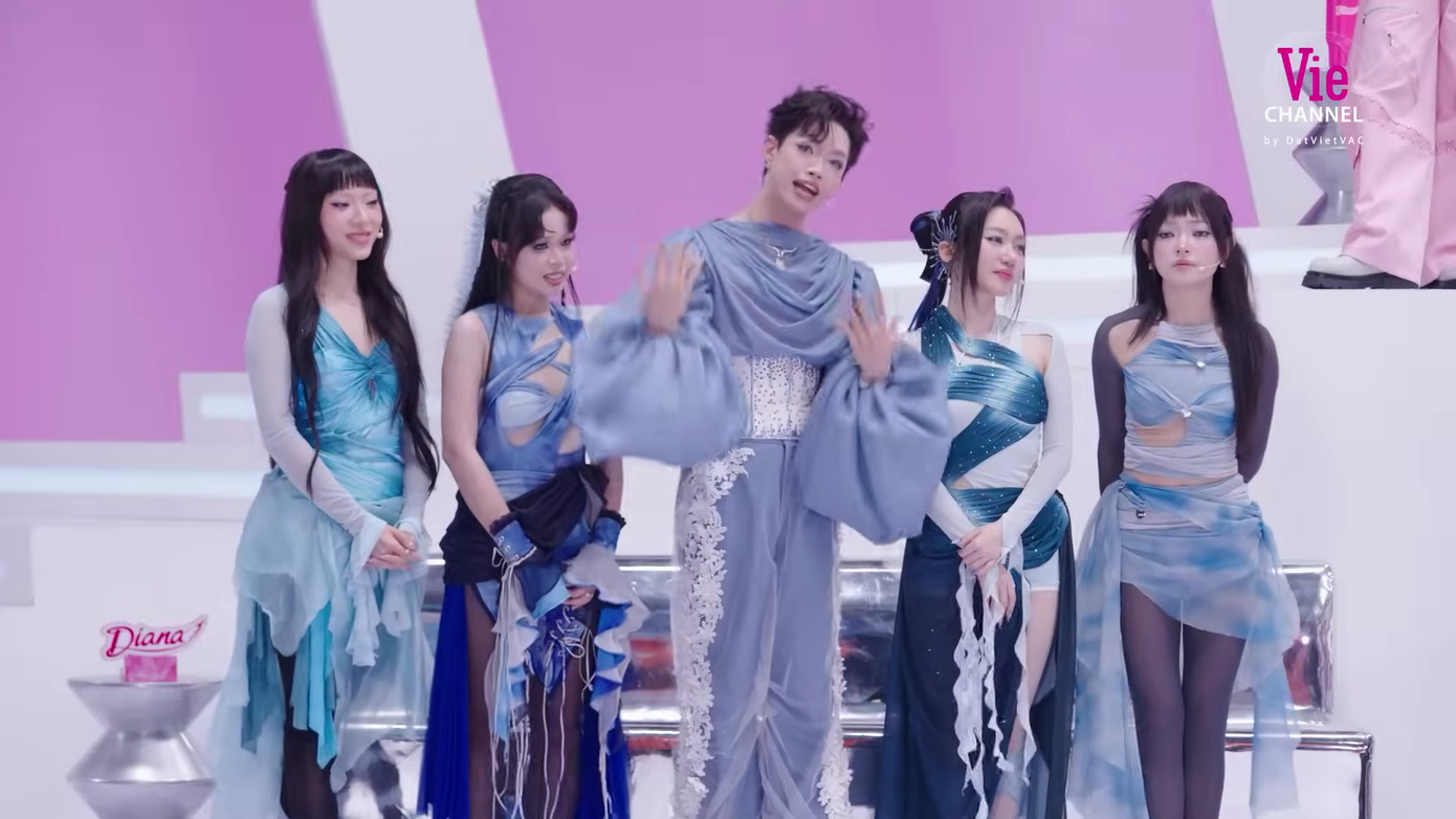 “Em xinh thứ 31” Lý Lệ Hằng (nickname Pháp Kiều) diện trang phục cùng tông xanh dương với các thành viên, nổi bật nhờ thiết kế áo phối form corset, tay áo siêu phồng. Layout make-up căng bóng, "dịu keo" của cựu thí sinh Say Hi "gây sốt".
