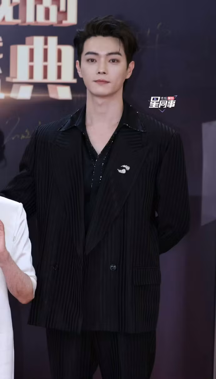| Vu Thích khoe visual cực bén trong âu phục tối màu, cài áo của Chaumet. |
