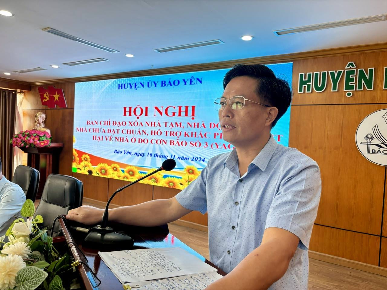Kết luận hội nghị, đồng chí Bí thư Huyện ủy Hoàng Quốc Bảo yêu cầu: thành viên Ban Chỉ đạo thực hiện xóa nhà tạm, nhà dột nát, nhà chưa đạt chuẩn và hỗ trợ khắc phục thiệt hại về nhà ở do ảnh hưởng bởi bão số 3 trên địa bàn huyện Bảo Yên tích cực xuống cơ sở, đôn đốc nắm tình hình, kịp thời giải quyết khó khăn vướng mắc, phấn đấu hoàn thành tiến độ về nhà ở đối với hộ có công, hộ bị ảnh hưởng sau bão xong trước 31/12/2024, tăng cường công tác kiểm tra, giám sát, hỗ trợ người dân kịp thời, đúng đối tượng…