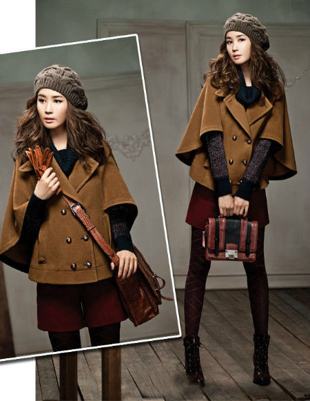 Trông cô nàng thật trẻ trung và ngây thơ trong kiểu áo cape này. Ấn tượng đầu tiên về áo cape là loại áo choàng chui đầu không tay, xòe rộng như cánh bướm. Khi trời trở lạnh, kiểu áo cape tối giản chi tiết này gợi nét dịu dàng và cồ điển cho các teen girl.