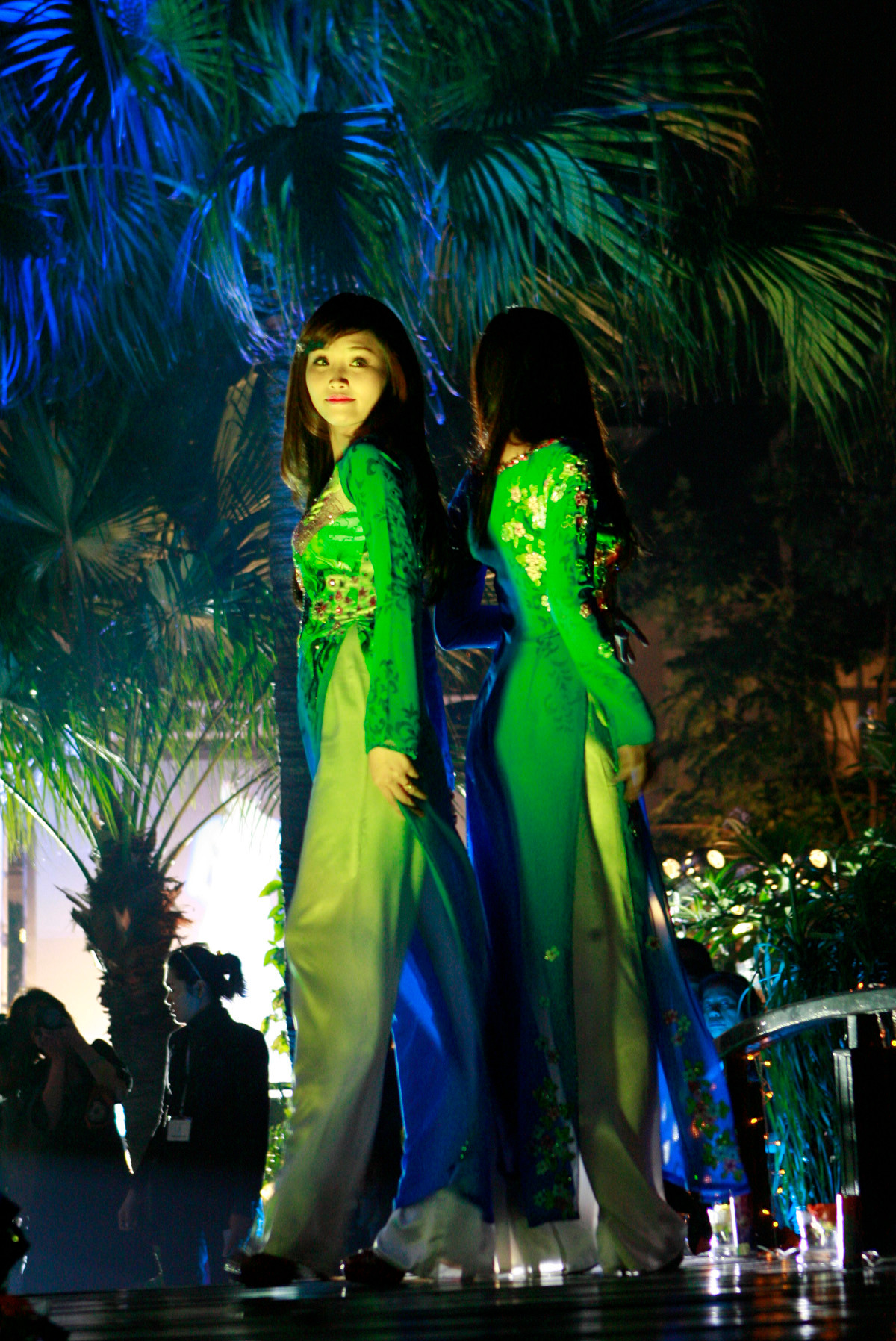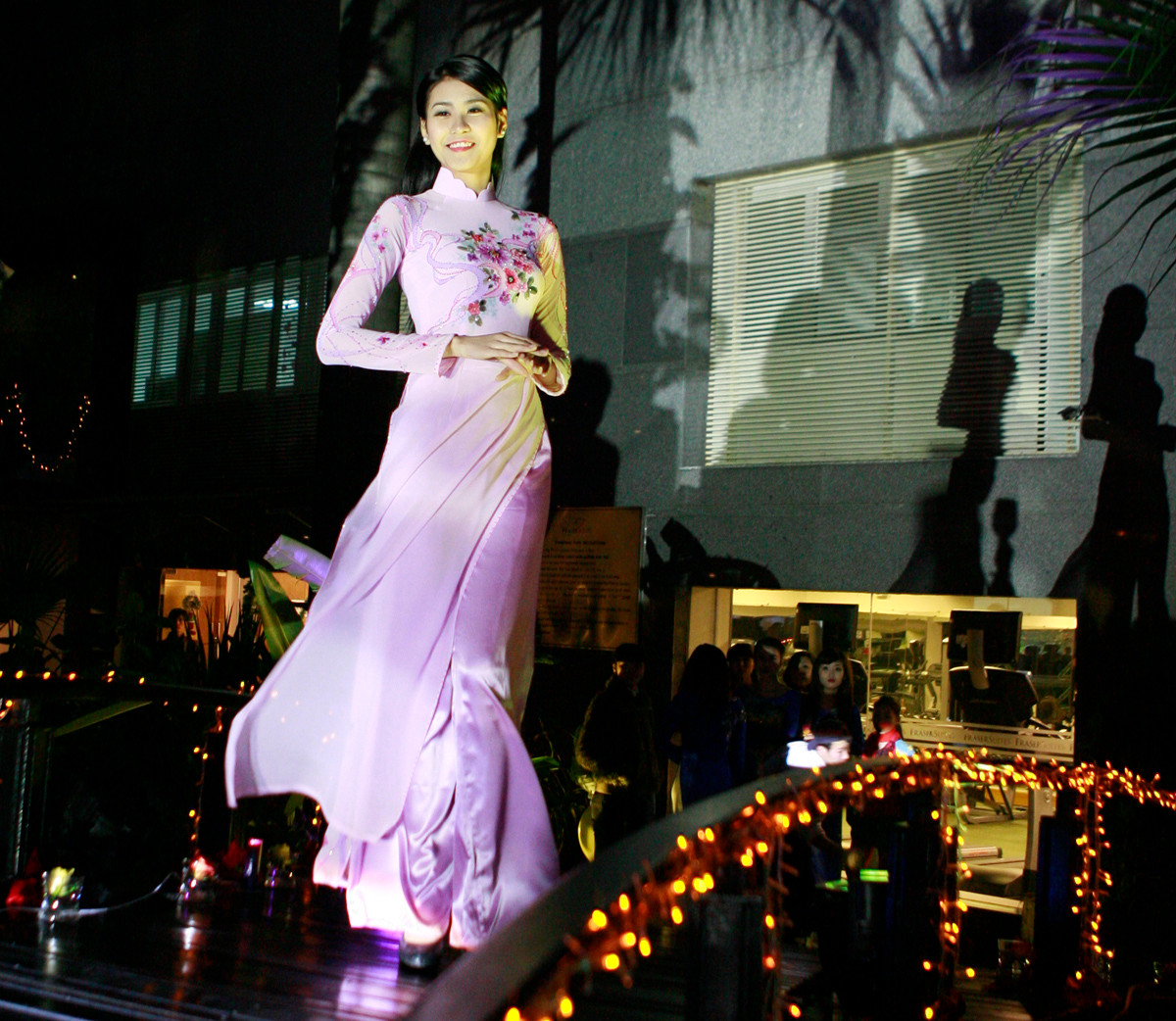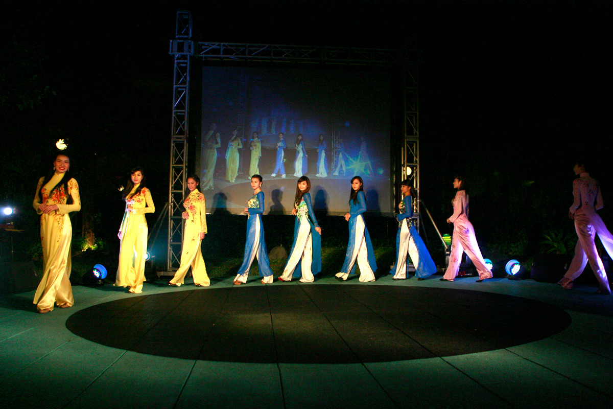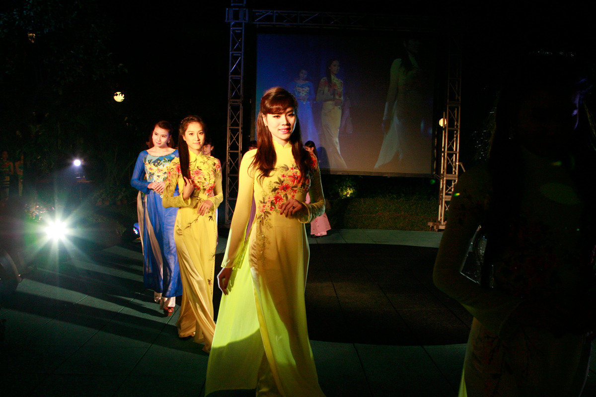 Tại đêm tiệc, những thiết kế áo dài mang thương hiệu Ngân An được trình diễn với sự tham gia của các người mẫu Hà Nội. Đây là bộ sưu tập được sang tạo nên bởi trí tưởng tượng, sự khéo léo tinh xảo chuẩn mực đặc trưng của người Hà thành.
