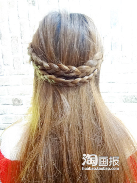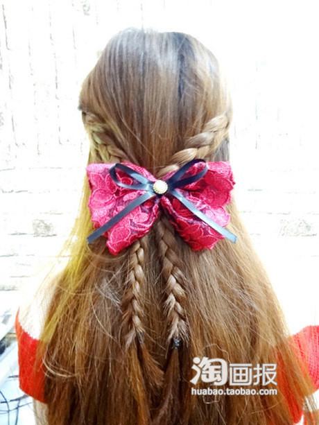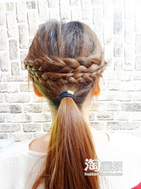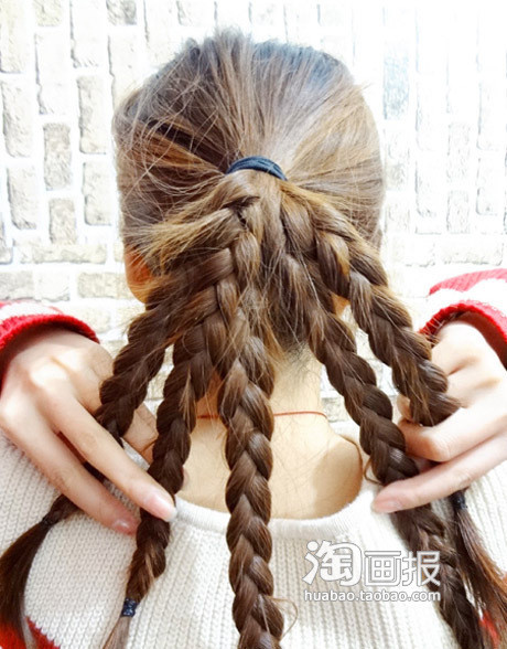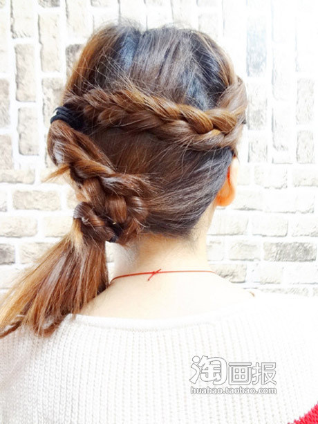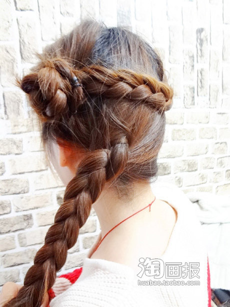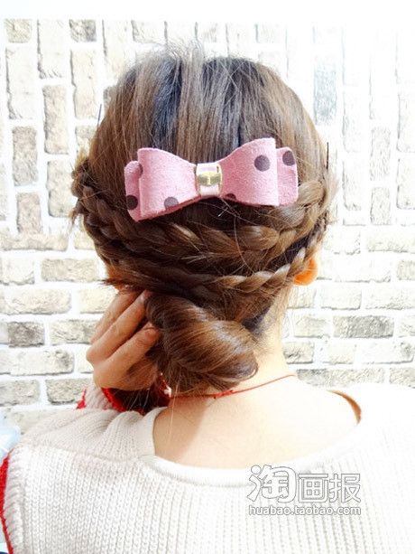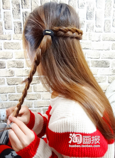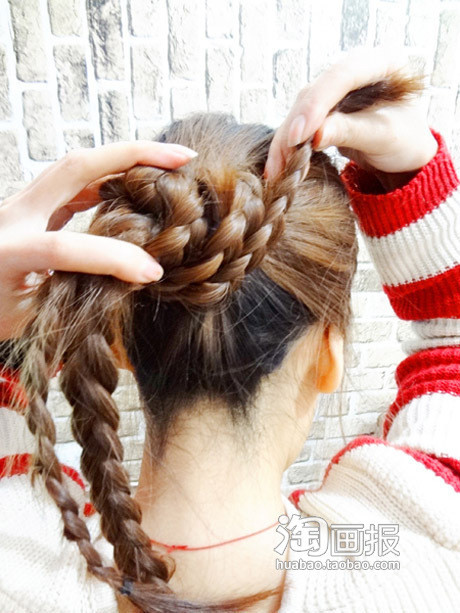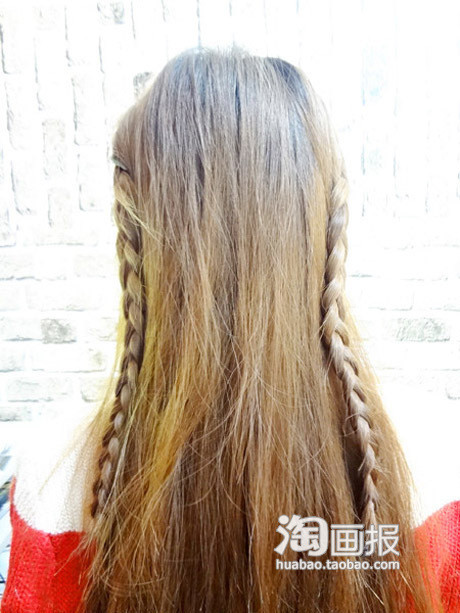 Tết hai bên hai lọn tóc nhỏ và đưa hai lọn tóc sang hai bên như trên hình.