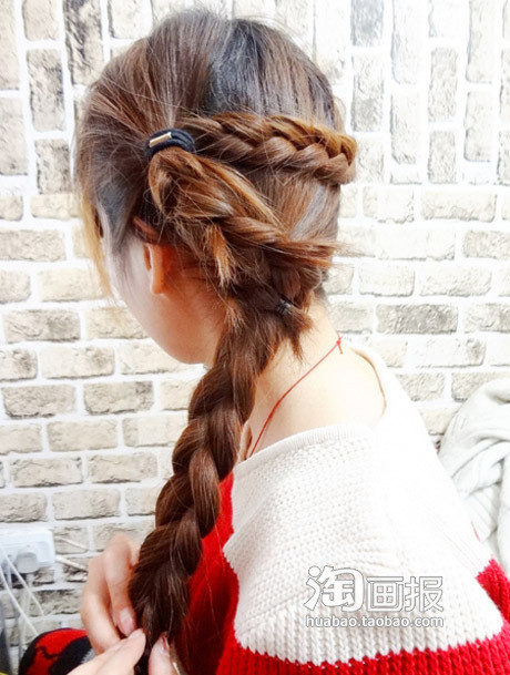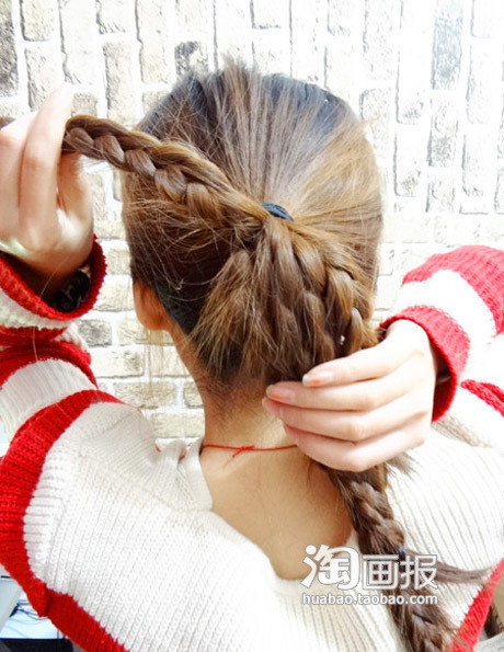 Tết một lọn tóc nhỏ ở mang tai bên phải rồi hất sang và buộc cùng với một lọn tóc ở mang tai bên trái.