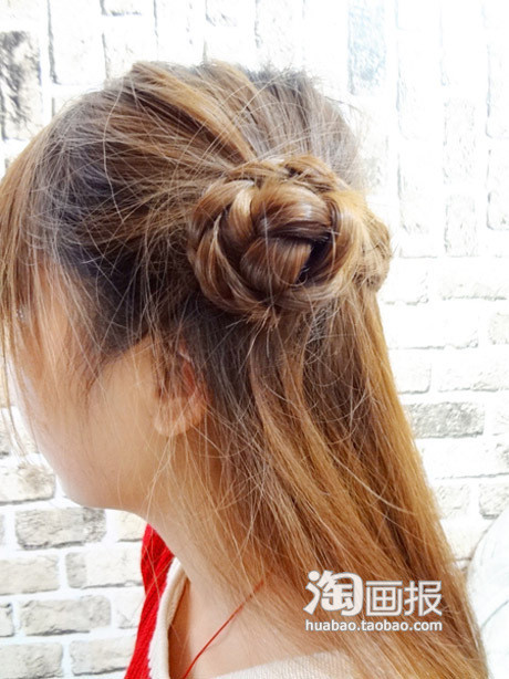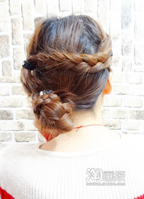 Cũng với lọn tóc như trên nhưng với phần tóc còn lại bạn cũng tết lại và quấn lại thành búi tròn là bạn lại có thêm một kiểu tóc khác.