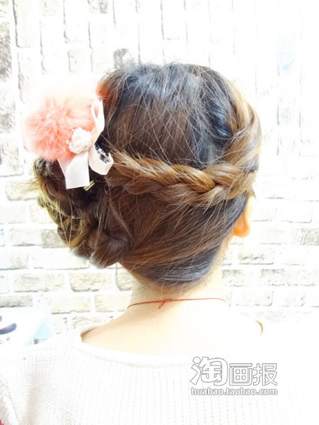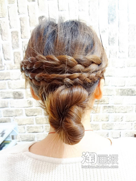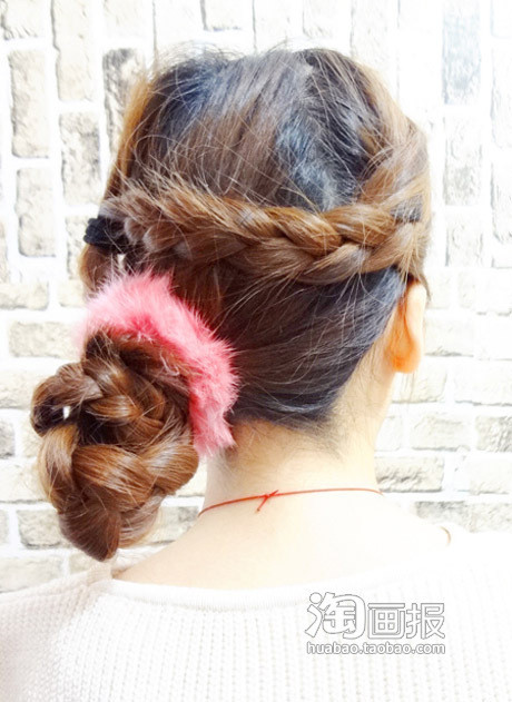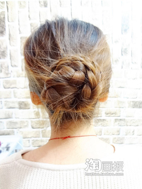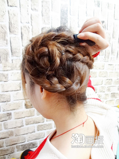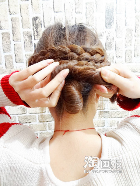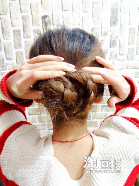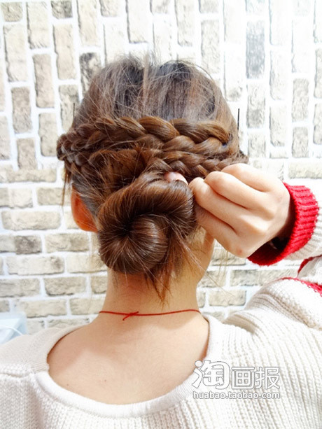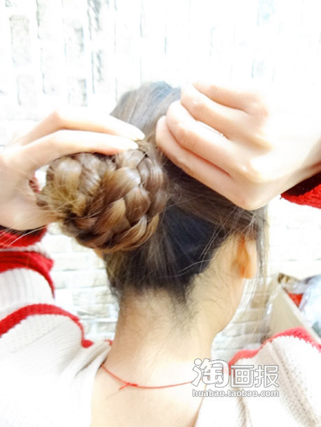 Phần tóc còn lại bên dưới bạn cũng tết lại và quấn xung quanh búi tóc ở bên trên.