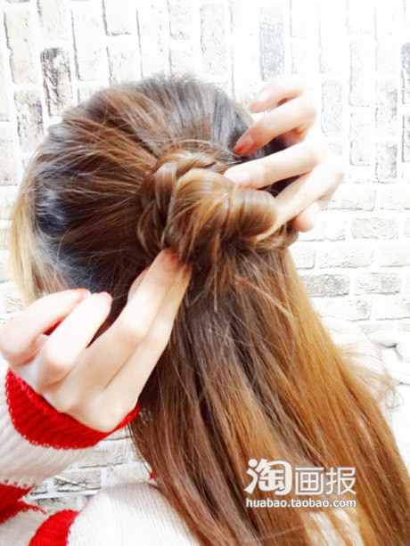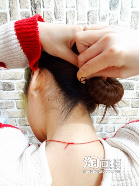Phần tóc bên dưới bạn buộc lại, sau đó quấn tròn và dùng dây và ghim tóc cố định lại.