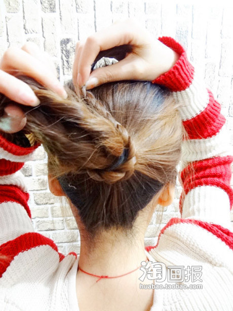Quấn từng lọn tóc quanh nút buộc để tạo thành một búi tóc tròn như trên.