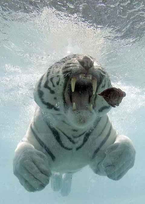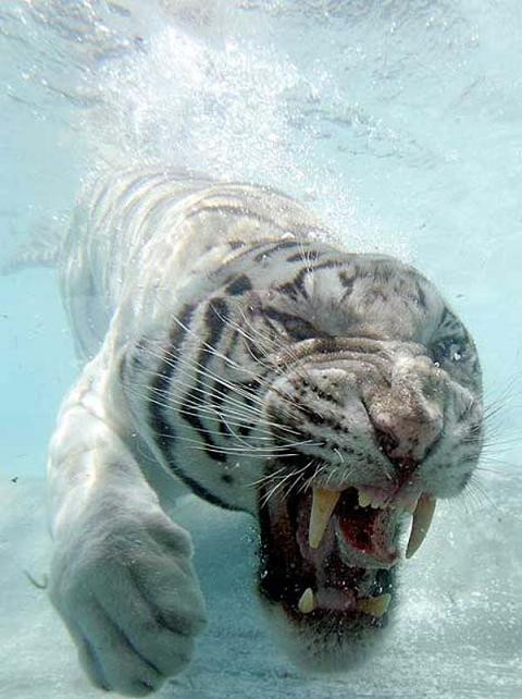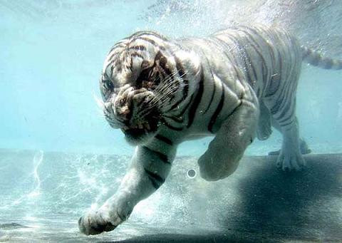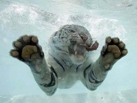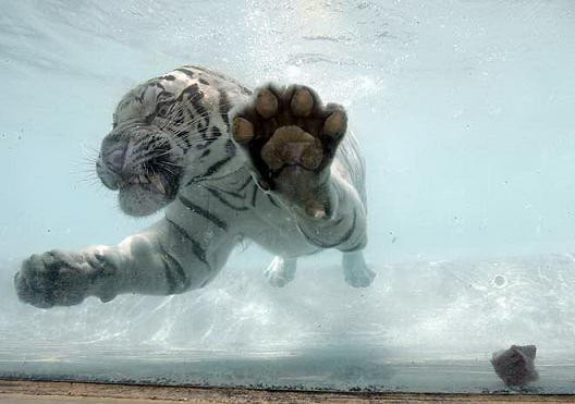 TPO - Odin - chú hổ trắng Bengal, dài 3m, nặng khoảng 250 kg, đang được nuôi tại khu bảo tồn động vật hoang dã Six Flags ở Vallejo, gần San Francisco (Mỹ). Chú hổ trắng này đang trở thành tâm điểm chú ý của du khách tới thăm khu bảo tồn với khả năng lặn tuyệt vời của mình.