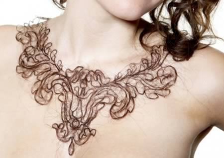 Kerry Howley, sinh viên khoa nghệ thuật trường Đại học Middlesex tạo ra một chiếc vòng cổ từ tóc người , cô đặt tên tác phẩm của mình là “Thu hút và ác cảm”.