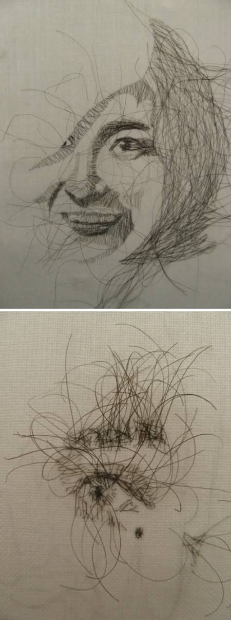 Zaira Pulido hỏi xin tóc của bạn bè và người thân, sau đó sử dụng chính những sợi tóc này để thêu chân dung của họ.