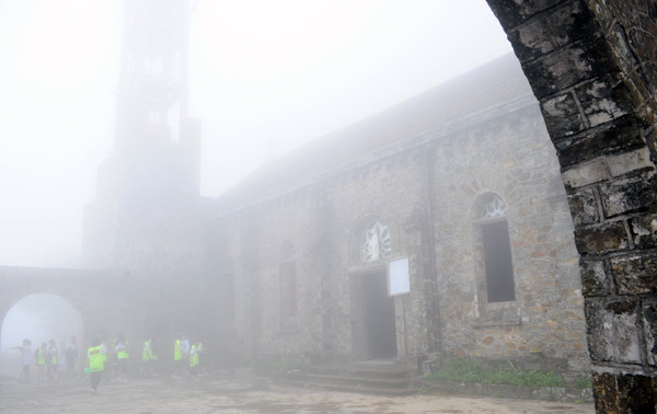 Nhà thờ đá trên đỉnh núi Tam Đảo ẩn hiện trong sương mờ