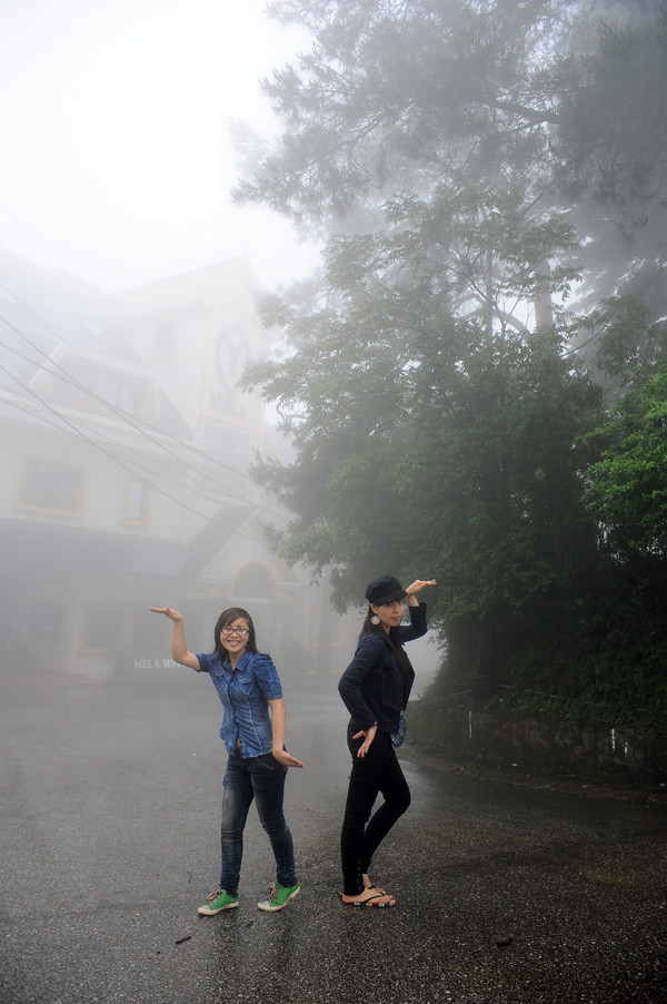Các bạn trẻ rất thích thú đùa nghịch trong sương mờ