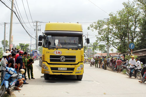 Xe container cán chết hai mẹ con. Ảnh: An Nhơn