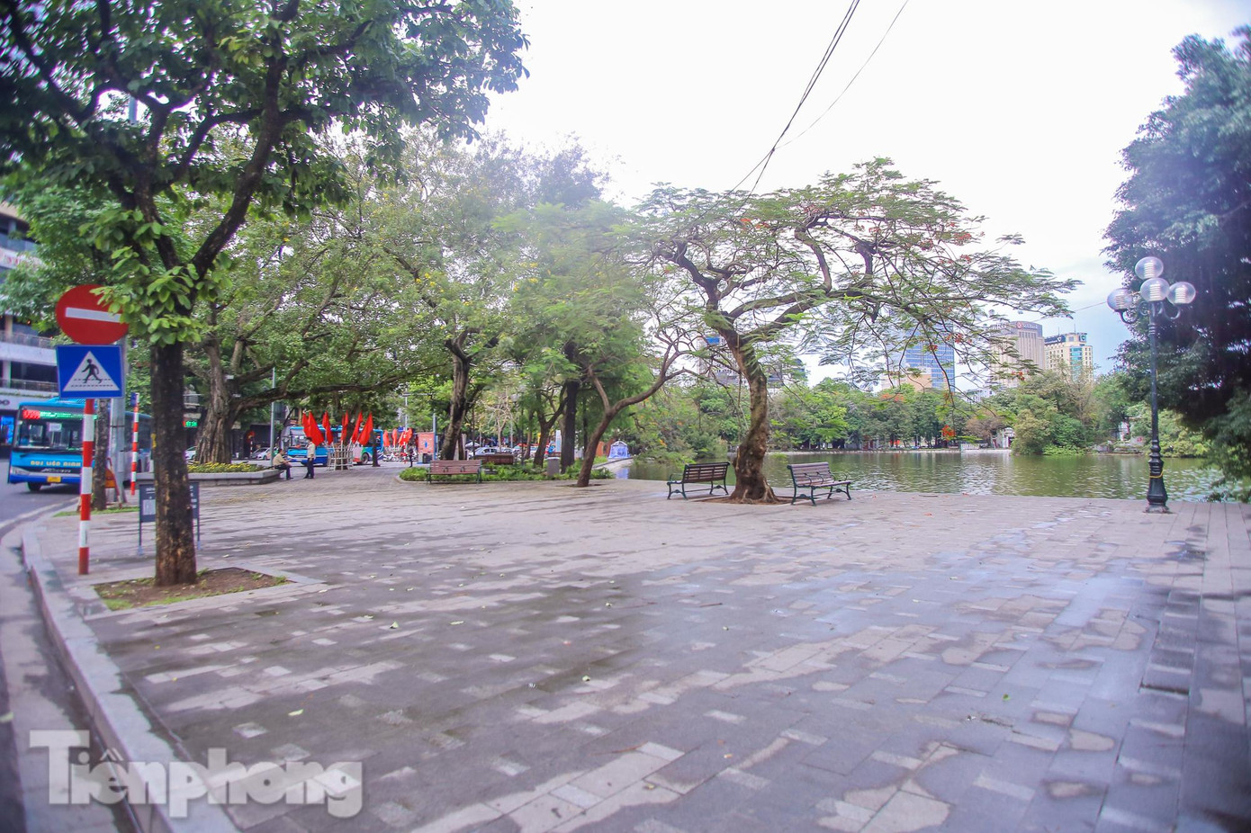 | Do tình hình COVID-19 đang diễn biến phức tạp trong cộng động nên nhiều người dân cẩn trọng. Khu vực Hồ Gươm vắng vẻ, ít người qua lại. |