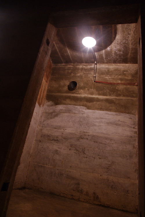 Ngay sau tấm cửa kiên cố với 4 chốt sắt phụ, 1 chốt chính là lối vào bệnh viện dã chiến với quy mô cực kỳ hoành tráng. Cửa vào có thể hơi nhỏ khiến bạn hơi sợ bởi sự lạnh lẽo và thiếu ánh sáng của nó