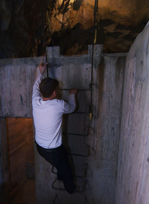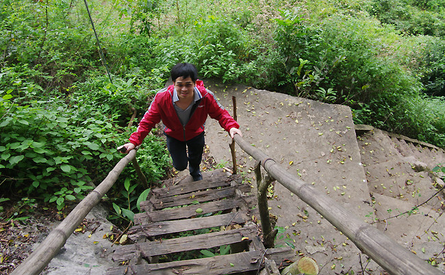 Lối lên hang hiện nay vẫn giữ theo kiểu ngày trước (thang gỗ cơ động có thể phá hủy khi có báo động địch tấn công).