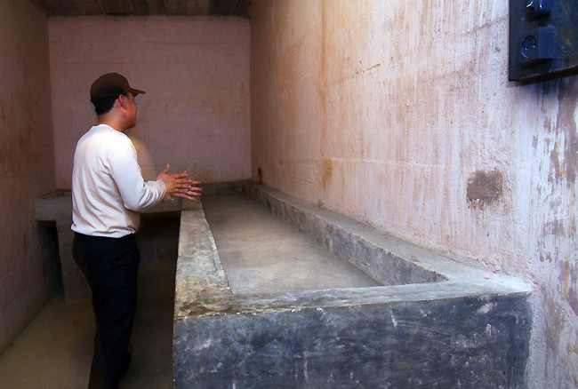 Cuối đường hầm là 2 tấm cửa sắt lớn chống địch đột kích, công phá. Đây cũng sẽ là lối thoát hiểm nếu địch tấn công từ phía cửa trước