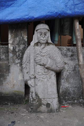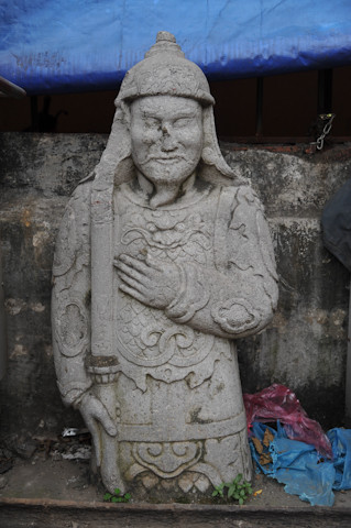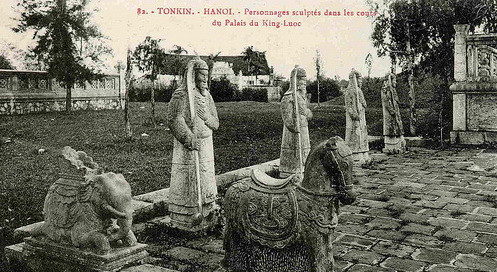 Theo tài liệu của nhà nghiên cứu người Pháp Phillippe Papin, phía trước lăng mộ Hoàng Cao Khải hồi đầu thế kỷ XX có hai dãy tượng gồm 8 chiến binh cao 1,3m cầm gươm đứng gác.