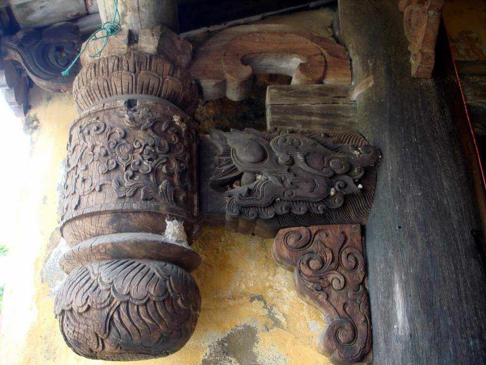 Toàn bộ tam quan cao 5m, rộng nhất 1,5m, dài 6m. Kề ngay đấy là 4 trụ biểu, trên chóp trụ có khối hình hoa sen cánh lật… Dù thiên nhiên khắc nghiệt, lại phải đương đầu với nhiều trận cuồng phong hàng trăm năm qua nhưng đến nay, công trình chính vẫn vững vàng, bề thế.
