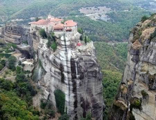 Tu viện Holy Trinity được xây dựng từ năm 1476 trên một đỉnh núi đá hiểm trở. Ngày xưa, tu viện này dùng một chiếc thang dây để phục vụ cho việc di chuyển nhưng sau đó, 140 bậc thang được cắt trên núi đá.