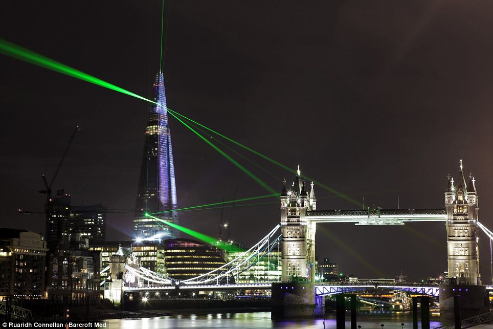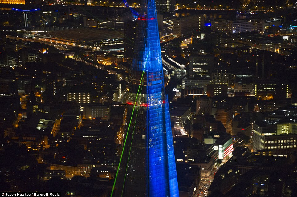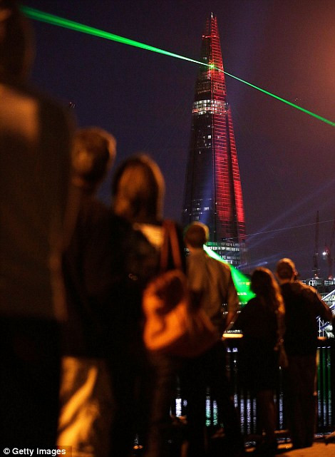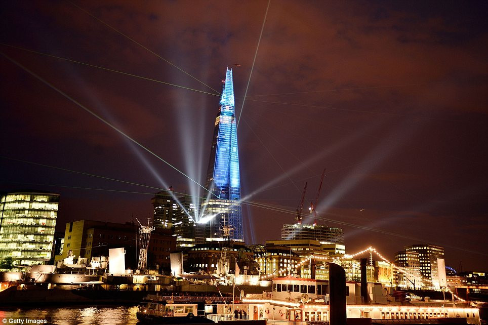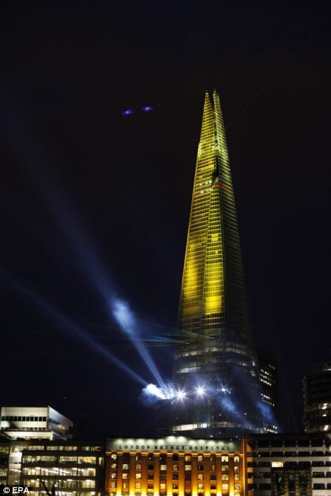 Đêm khánh thành tòa nhà cao nhất châu Âu đã khiến thành London bừng trong đêm hòa trong tiếng nhạc cổ điển phát ra từ tòa nhà.