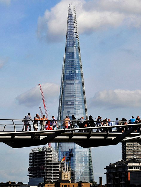 The Shard cao 310m, có tháp nhọn nằm ở trung tâm Thủ đô London, Vương quốc Anh. Đây cũng là địa điểm quy tụ các công trình nổi tiếng khác như nhà thờ St Paul, tòa nhà Quốc hội Anh…