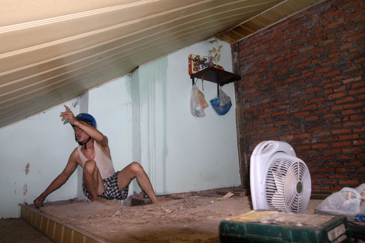 Cùng cảnh, gia đình bà Phạm Thị Phận ở phòng 411 cũng có 3 người "chui" trong căn phòng 14m2 than thở: "Ngày mưa thì không sao, nắng lên là khổ lắm, chen chúc nhau chẳng khác gì ở trong... chuồng lợn".