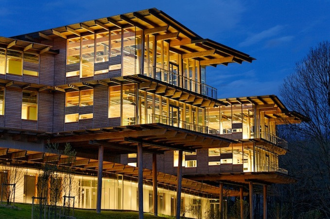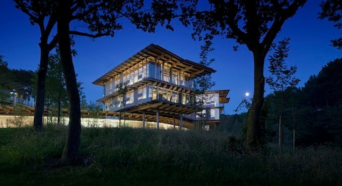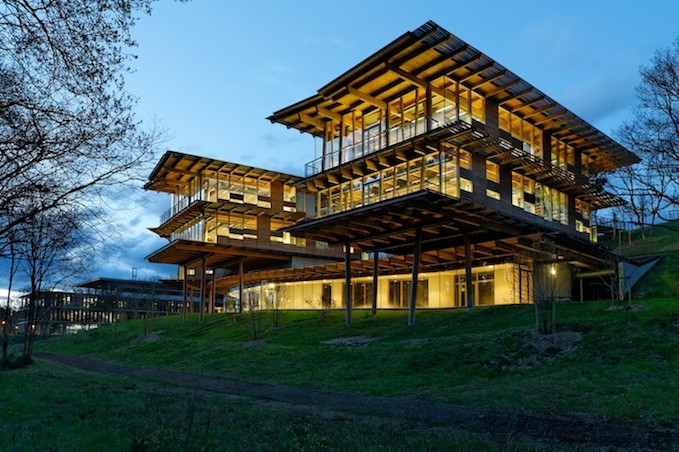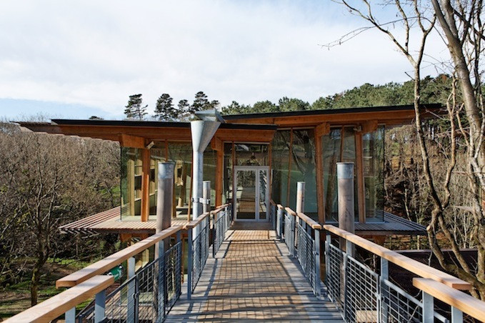Ngôi nhà bằng gỗ nhiều tầng này nằm giữa nhiều cây xanh và có sức chứa khoảng 500 người thực sự là địa điểm thu hút đối các đoàn du lịch.