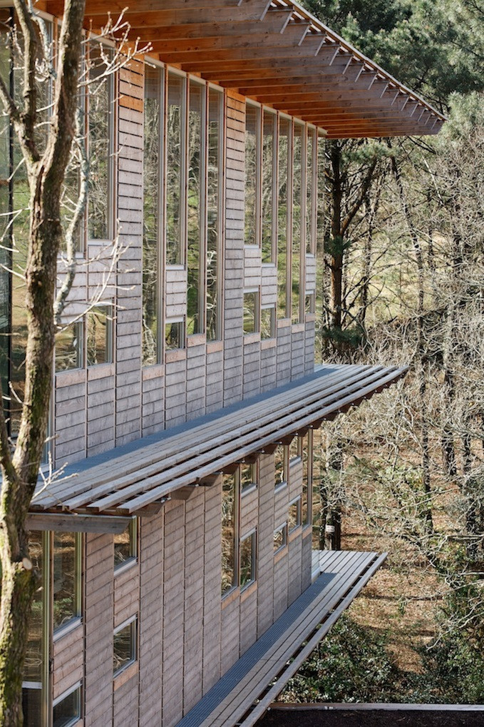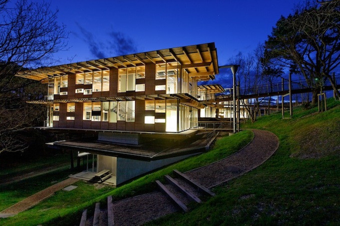 Gọi là ngôi nhà nhưng thực tế là một khuôn viên rộng khoảng 14.000 mét vuông trong đó có một ngôi nhà lớn với nhiều tầng được xây dựng hoàn toàn bằng gỗ. Ngôi nhà gỗ được thiết kế độc đáo, chia thành nhiều gian nhỏ và mỗi gian đều có cửa sổ tạo điều kiện cho ánh nắng mặt trời chiếu vào.