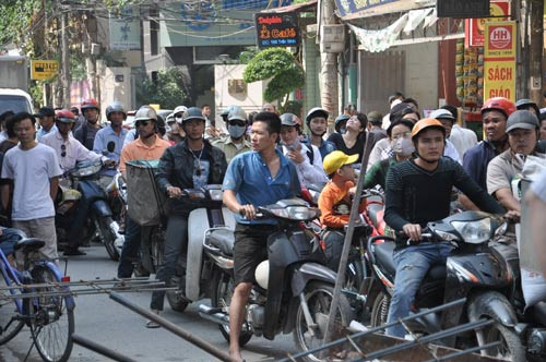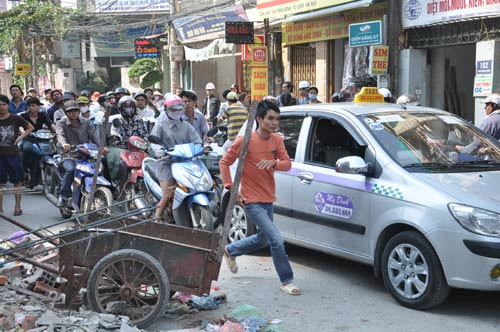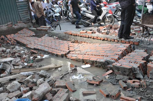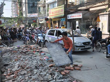 Vào thời điểm trên, hàng chục người dân, vì cho rằng đơn vị thi công hiện xây dựng tòa nhà cao tầng tại số 28 đường Trần Bình đã vi phạm vào phần đất lưu không theo sơ đồ quy hoạch, đã tới trước bức tường gạch vừa xây và hò nhau đẩy đổ.
