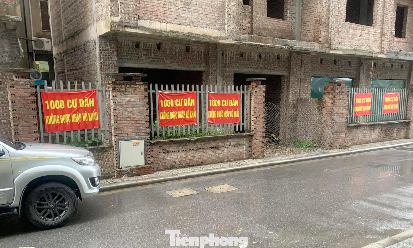 Được biết, trong khi dự án đang trong quá trình điều tra thì hàng trăm hộ đã mua nhà hơn 5 năm tại đây vẫn chưa được cấp sổ hồng. Người dân bức xung treo băng rôn khắp các ban công đòi quyền lợi.