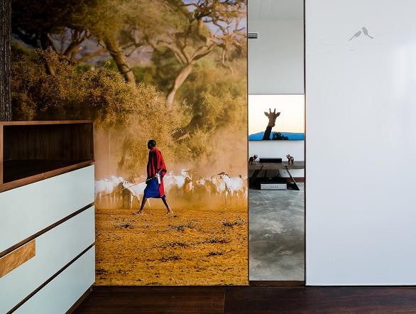 Tranh phong cảnh hoang dã và gương soi giúp lấy sáng cho khu vực phòng đọc.
