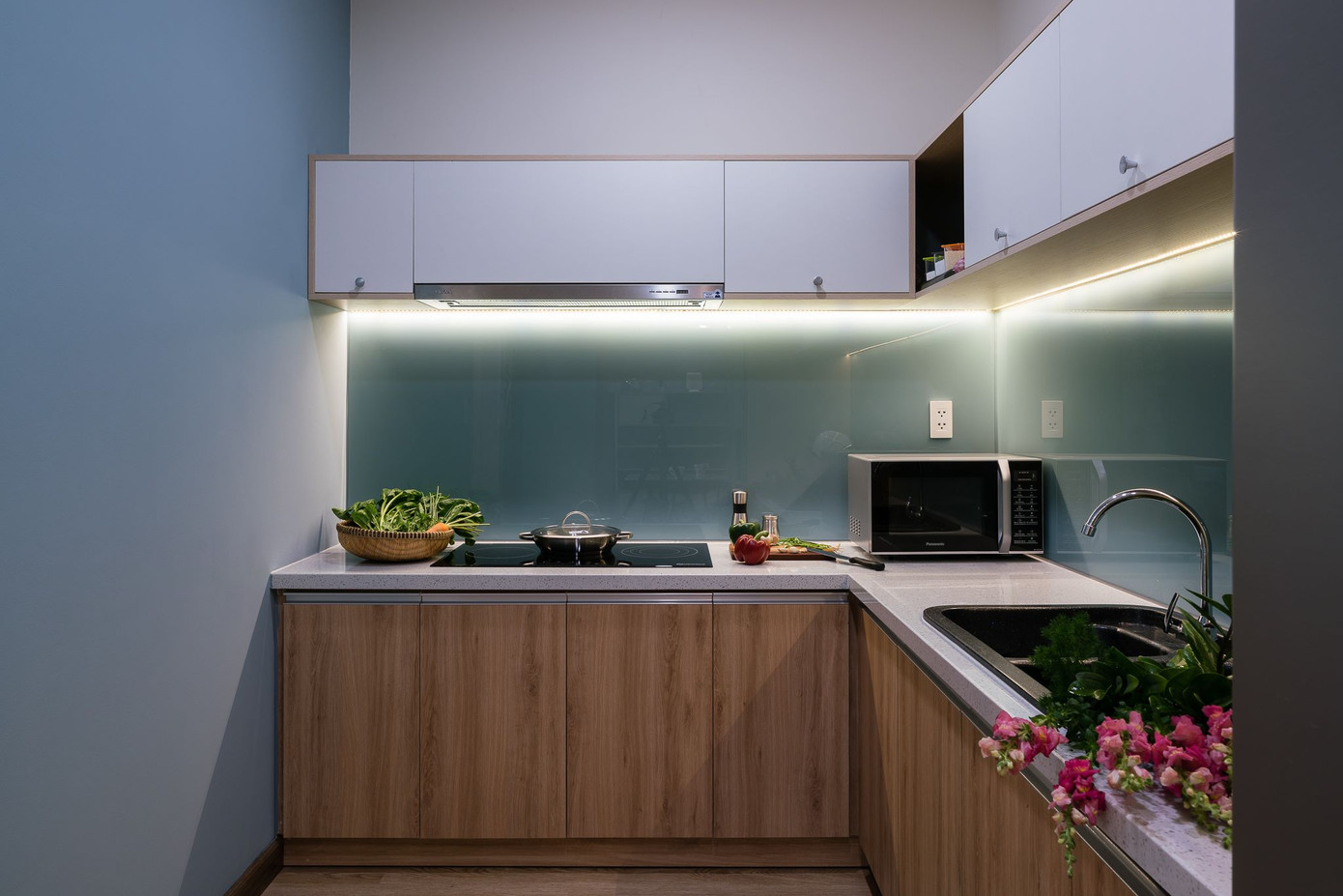 Không gian căn bếp sạch sẽ, ngăn lắp...