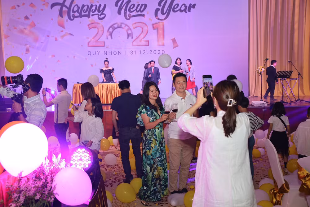 Được tổ chức trong nhà nhưng tiệc Countdown tại FLC Quy Nhơn không vì thế mà giảm bớt sự náo nhiệt với chương trình giải trí ấn tượng và những phần quà hấp dẫn cho du khách