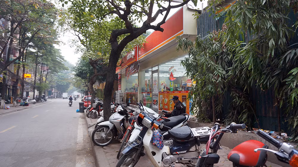Bãi xe ở cuối phố Phan Kế Bính nhìn từ flycam.