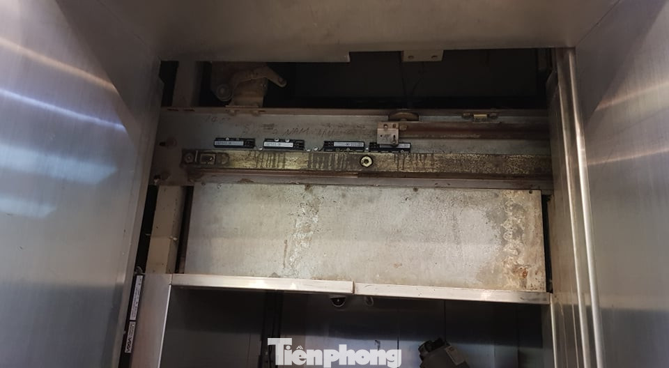 Bên trong thang hàng số 4 gặp sự cố rơi tự do từ tầng 5 xuống khiến nhiều người hoảng loạn.