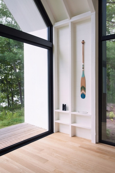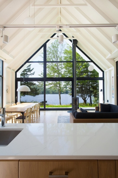 Căn nhà này do công ty YH2 thiết kế ở Quebec, Canada. Nhà giống như một cabin, bằng gỗ tuyết tùng trắng phau.