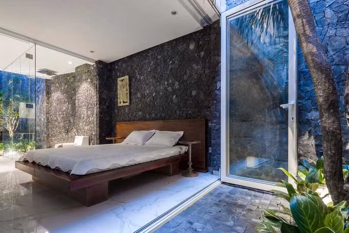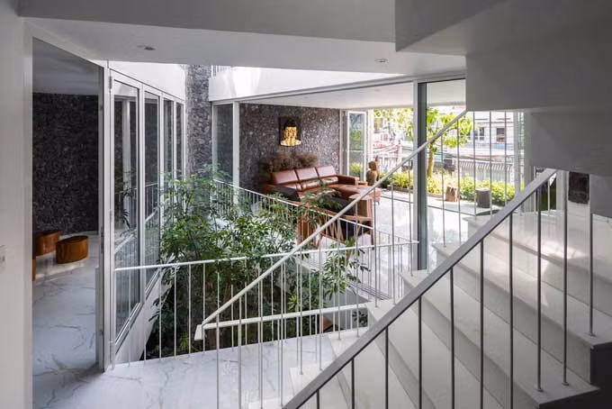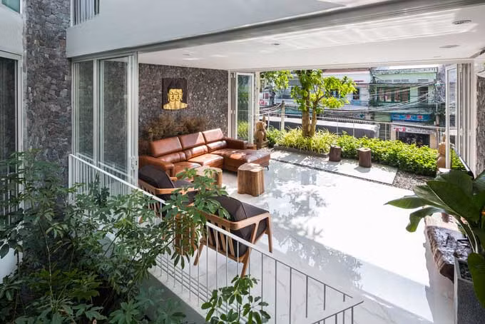 Ngôi nhà giải quyết được vấn đề an ninh, riêng tư nhưng vẫn thông thoáng và kết nối được với bên ngoài qua các lớp cửa.