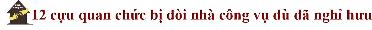Mới đây dư luận xôn xao trước việc Bộ Xây dựng ký thông báo gửi 12 cựu quan chức yêu cầu trả lại nhà công vụ của Chính phủ tại chung cư CT1-CT2, khu đô thị Yên Hòa, Cầu Giấy, Hà Nội. Điều đáng nói, thông báo đòi nhà đã được Bộ Xây dựng gửi tới 12 cựu quan chức này từ 2-3 lần nhưng họ vẫn chưa trả lại nhà công vụ.