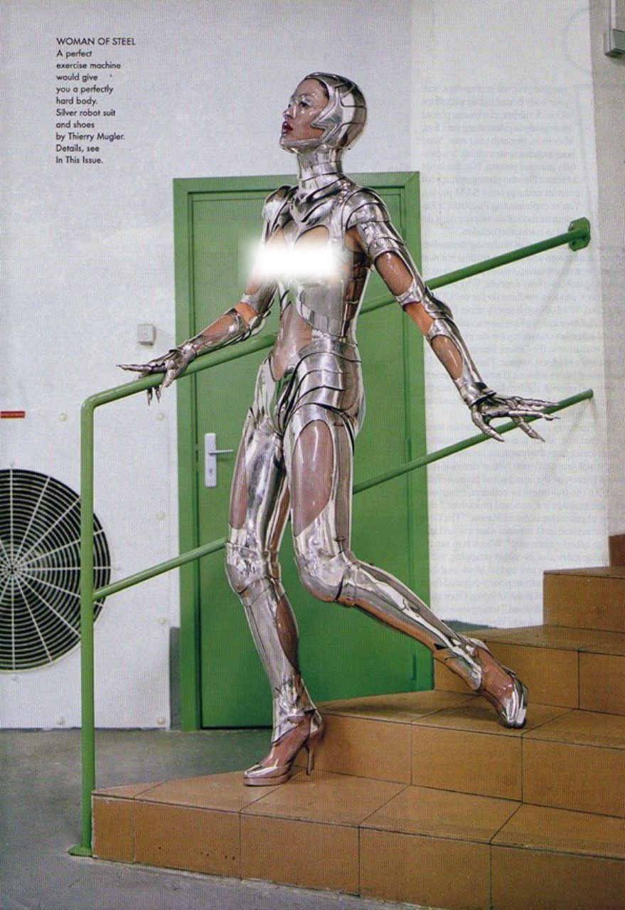 Trang phục Maschinenmensch được đặt tên theo nhân vật người máy trong tiểu thuyết Metropolis năm 1925 của Thea von Harbou. Tác phẩm được thực hiện trong vòng nửa năm cùng với nghệ sĩ Jean-Jacques Urcun. Đây là sáng tạo được đánh giá mang tính biểu tượng nhất của Thierry Mugler thuộc BST Haute Couture Fall 1995.