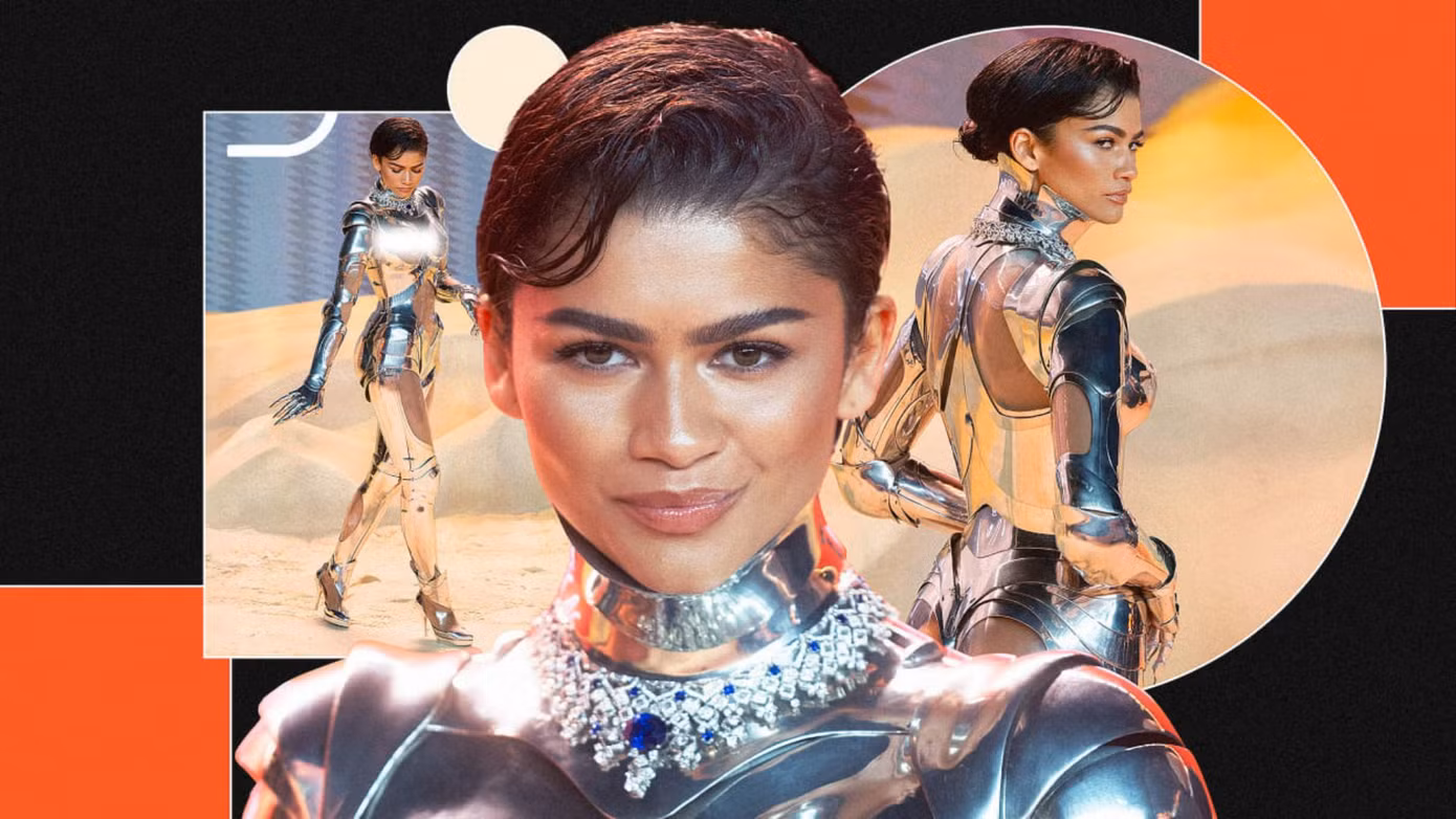 Tạo hình “gây bão” của cô được các tín đồ thời trang đánh giá cao về mặt ý tưởng. Bộ phim Dune: Part Two thuộc chủ đề khoa học viễn tưởng, kể câu chuyện chiến tranh vũ khí giữa các thiên hà. Diện mạo mang hơi hướng công nghệ đến từ tương lai phù hợp với vai diễn nữ chiến binh Chani của cô.